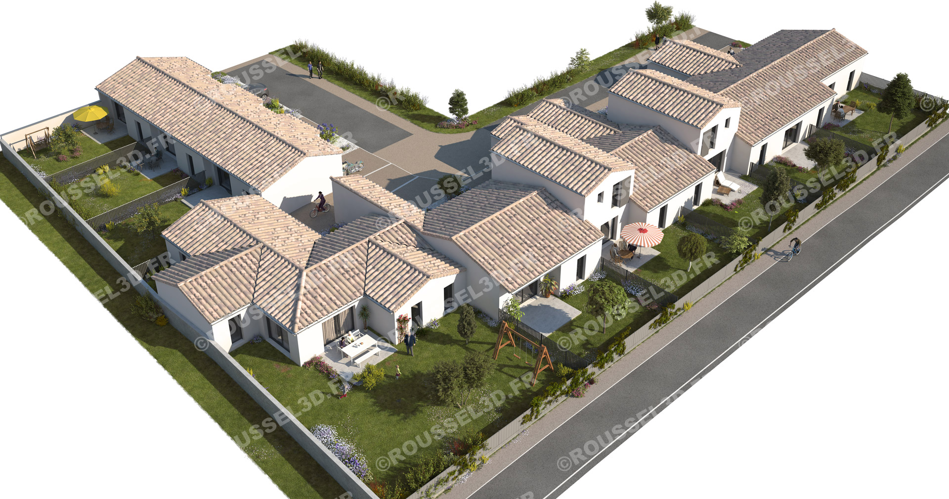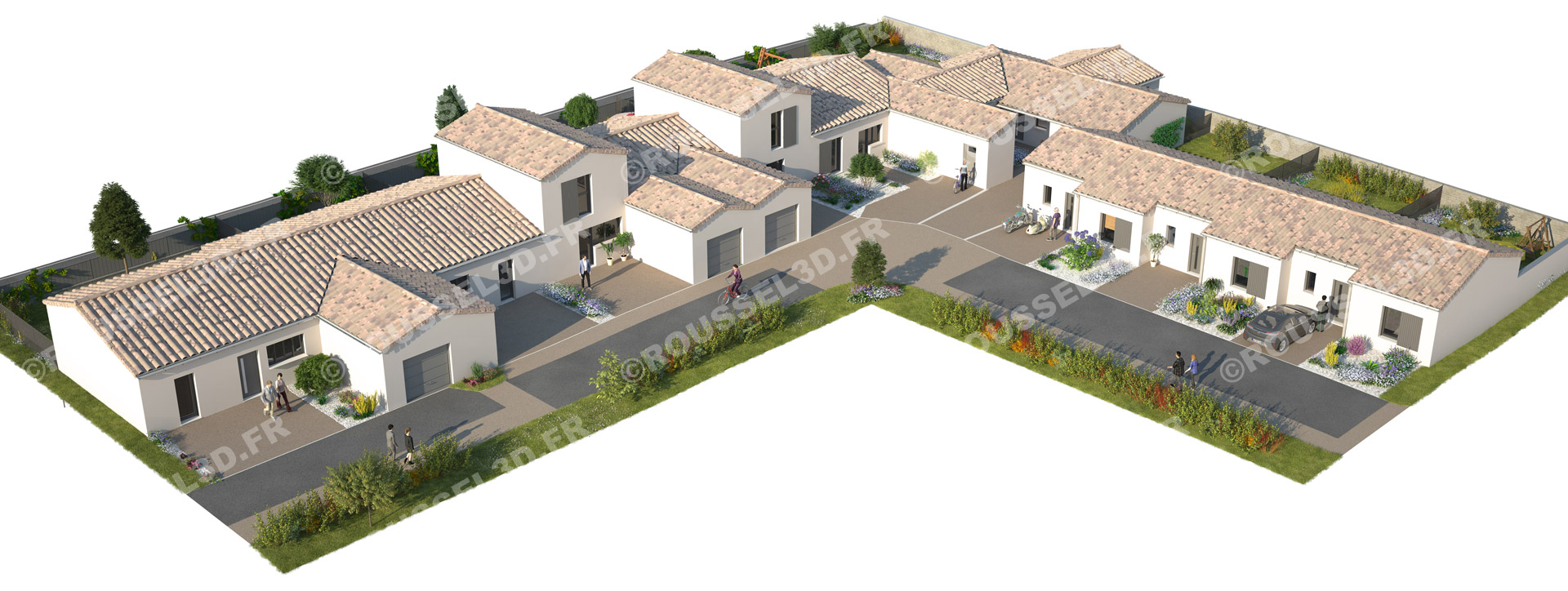 Opération composée de 6 lots. Modélisation 3d complète et maisons d'après plans.