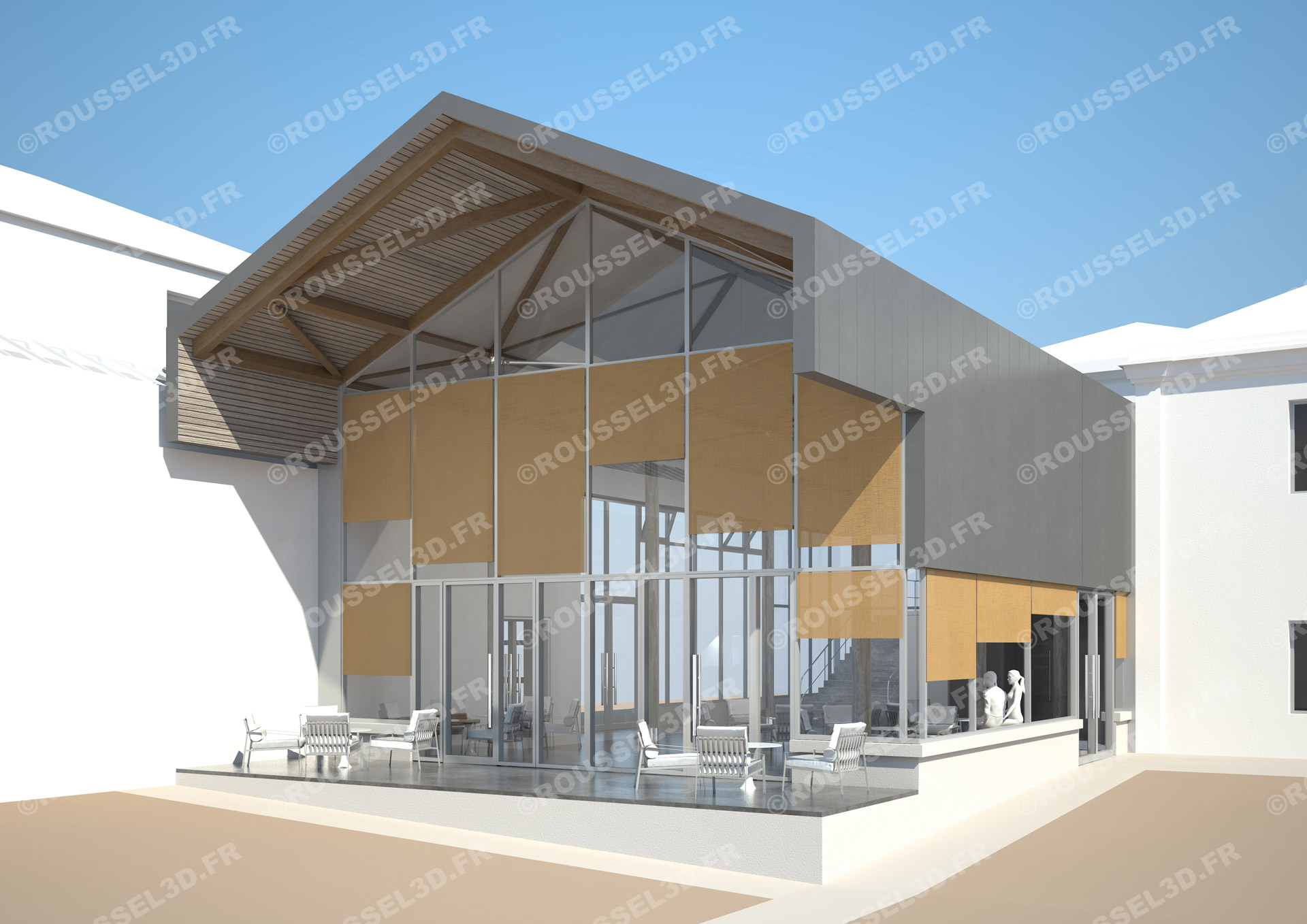 À partir des plans nous modélisons votre projet d'architecture en prenant soin de vos matériaux et de vos références fabricant. Nous pouvons insérer le projet dans une photographie de votre choix ou reconstituer complètement l'environnement en modélisation 3d.